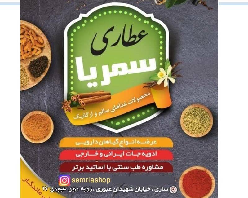 فروشگاه مواد غذایی ارگانیک و عطاری سمریا در شهر ساری فروش بصورت حضوری و آنلاین مواد غذایی سالم و ارگانیک و گیاهان دارویی