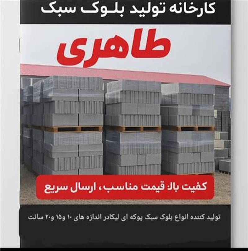 تولید بلوک سبک پوکه‌ای در تبریز | فروش مستقیم بلوک ساختمانی با کیفیت | کارگاه طاهری کارگاه بلوک طاهری تبریز تولیدکننده انواع بلوک سبک پوکه‌ای با سایز استاندارد، عایق صوت و حرارت، سبک، مقاوم در برابر آتش، با سیمان درجه ۱ و پوکه معدنی تبریز. فروش مستقیم از درب کارخانه با ارسال به سراسر کشور. کارگاه تولید بلوک سبک طاهری واقع در تبریز، با بیش از 10 سال سابقه درخشان در زمینه تولید انواع بلوک‌های سبک ساختمانی، یکی از پیشگامان تأمین مصالح نوین و با کیفیت در شمال‌غرب کشور است. ما با بهره‌گیری از پوکه معدنی مرغوب کوه‌های تبریز و سیمان درجه‌یک، اقدام به تولید بلوک سبک پوکه‌ای با ویژگی‌های ممتاز کرده‌ایم که اجرای پروژه‌های ساختمانی را سریع‌تر، مقاوم‌تر و اقتصادی‌تر می‌سازد.